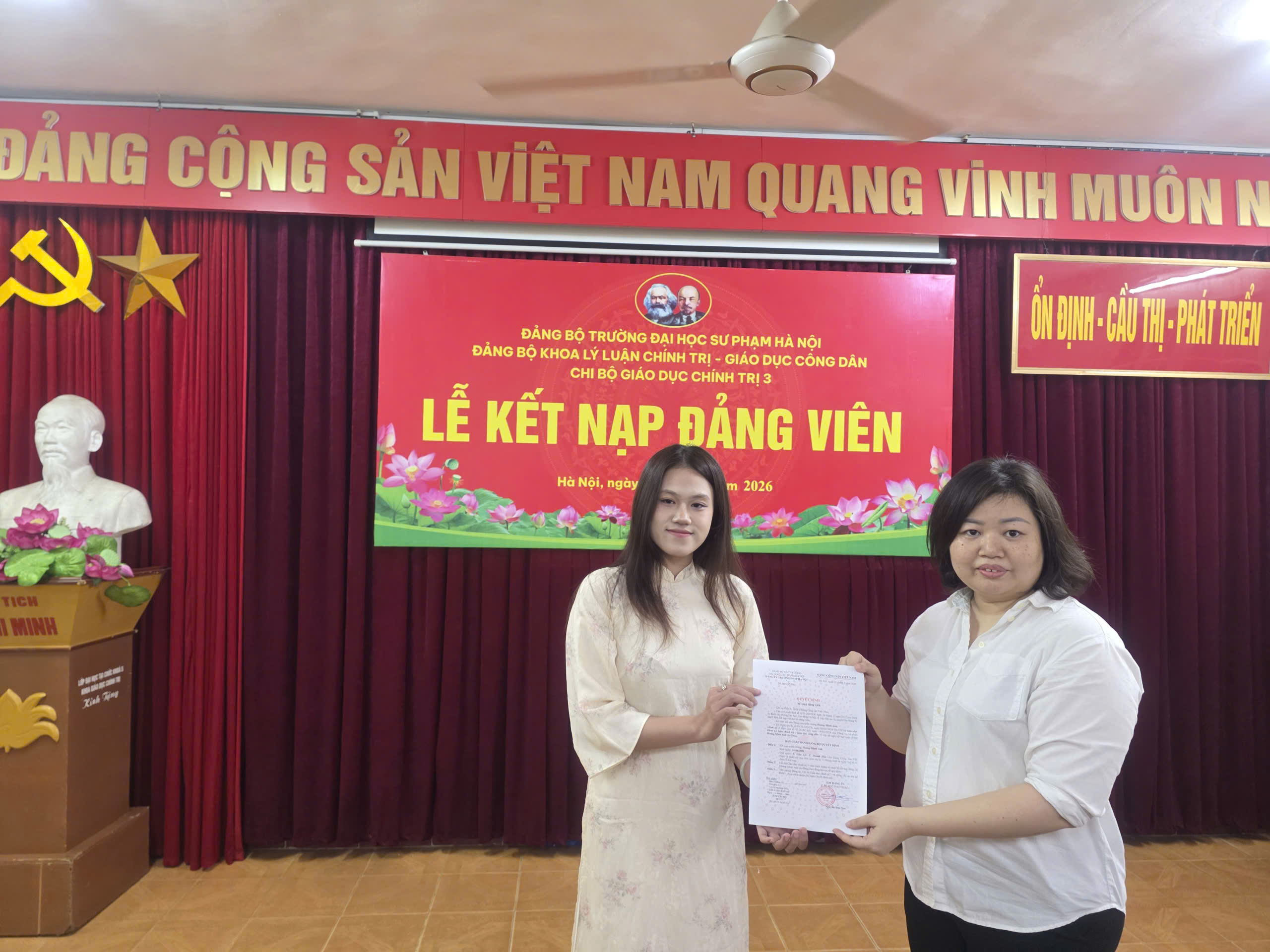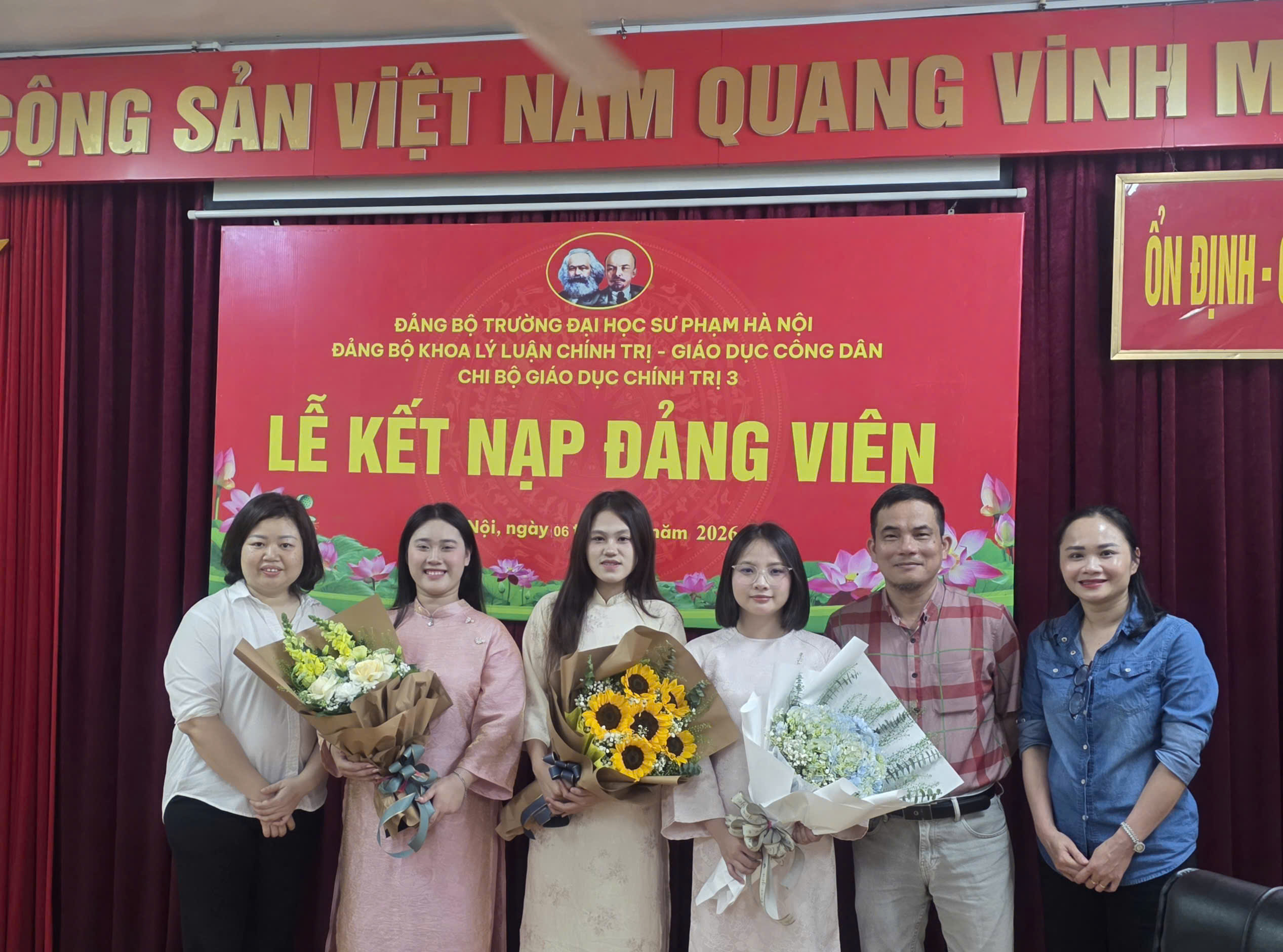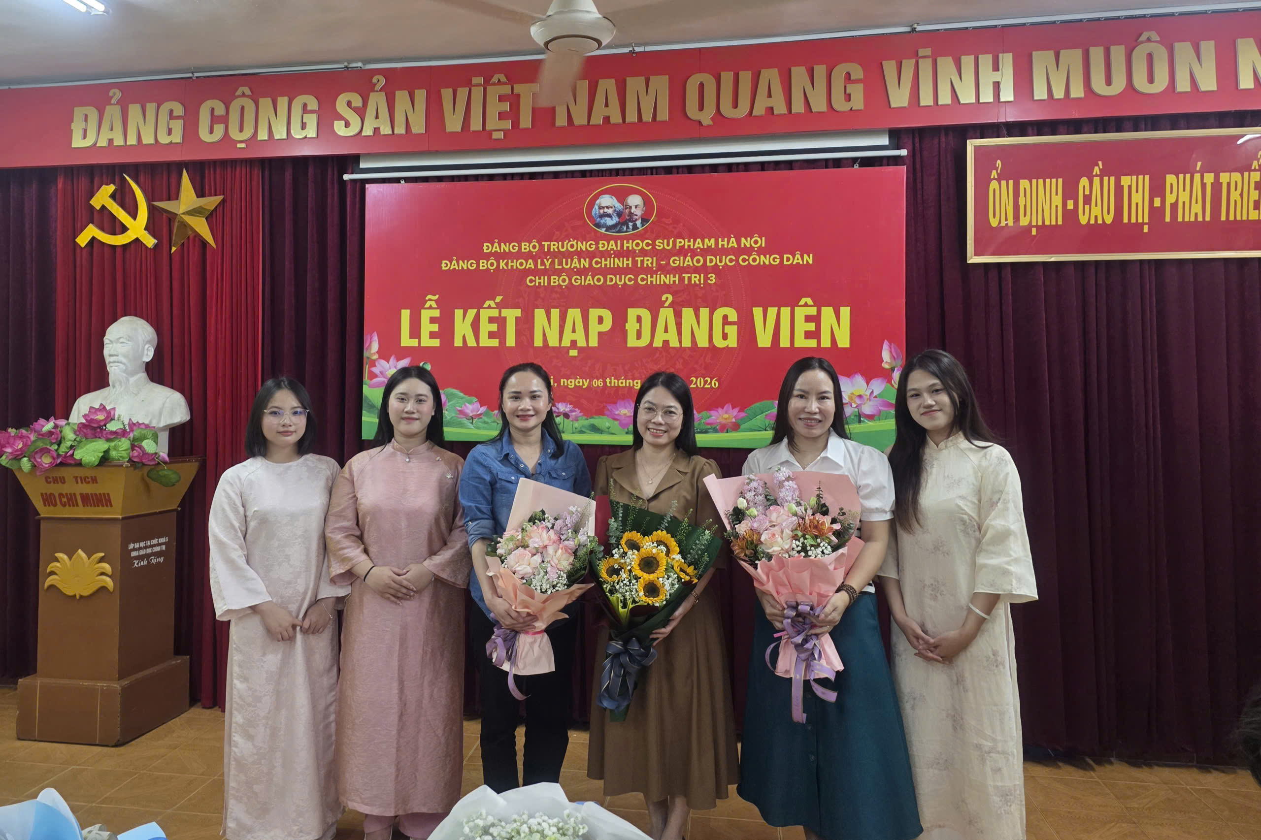 Sáng nay, ngày 6 tháng 4 năm 2026, Chi bộ Giáo dục chính trị 3 đã long trọng tổ chức Lễ kết nạp Đảng cho ba quần chúng ưu tú Hoàng Minh Anh, Phùng Thu Giang và Bùi Thị Thu Hằng.